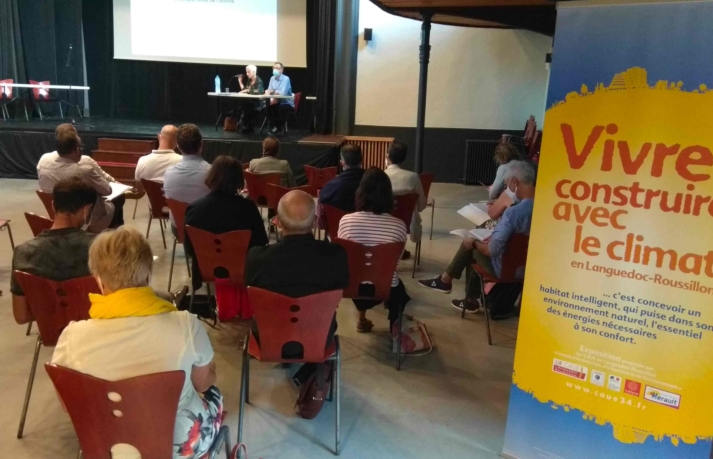 Renaud Barrès, directeur du CAUE 34, a ensuite tenu une conférence autour de l’exposition « Vivre et construire avec le climat » – nouvelle version, sur le thème « L’approche bioclimatique : construire avec le climat au service de la qualité de vie ».