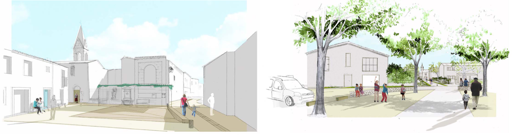 Les espaces publics emblématiques du centre ancien, comme la place de l’Église ou l’aire de Lancyre, font également l’objet de propositions relativement concrètes répondant aux contraintes de terrain et aux attentes des usagers consultés.