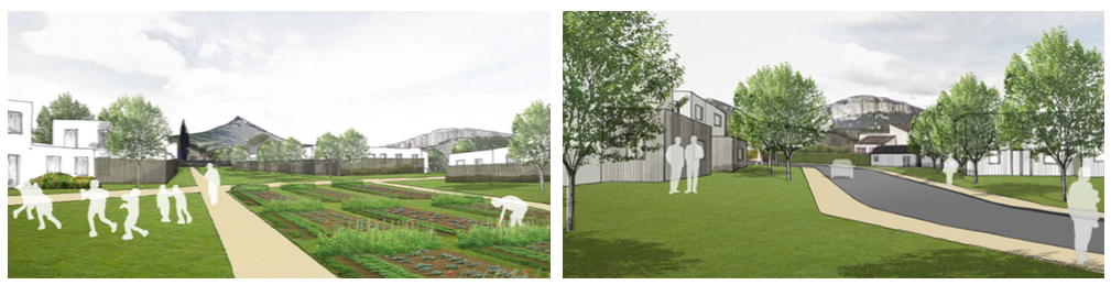 - ou encore organiser un quartier plus dense autour d’un espace public qui pose le cadre du grand paysage.
