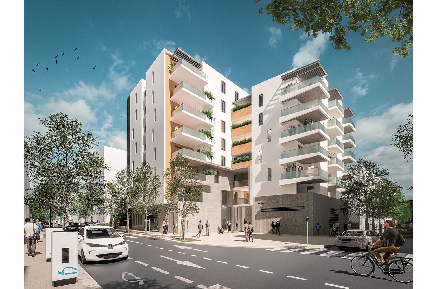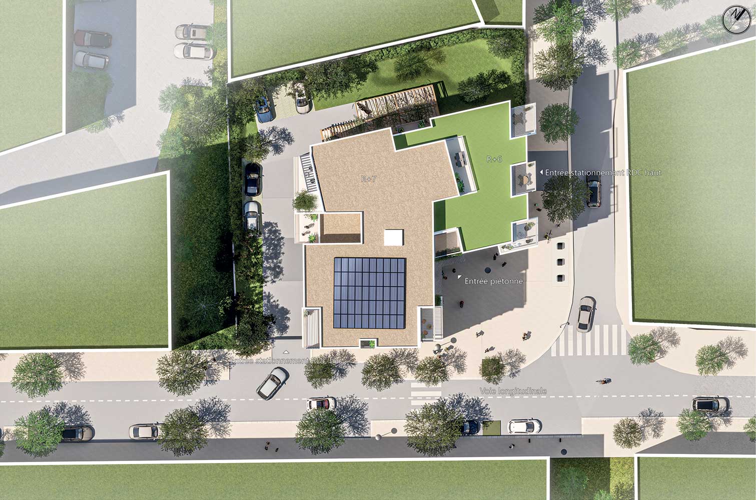 Dans la proposition de ce dernier, le jury souligne notamment une architecture relativement sobre et unitaire, un “socle” en relation avec l’environnement urbain, un traitement qualitatif de la “faille” verticale, une majorité de logements traversants munis de celliers et une implantation pertinente du local vélo en relation directe avec la rue.