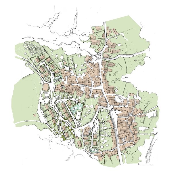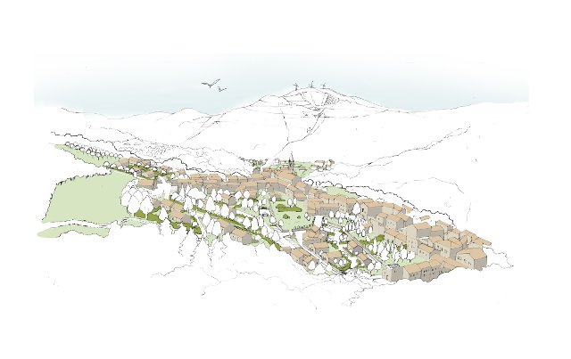 L’étude, confiée à l’agence Ubak urbanistes associée à l’agence Eskis paysagistes, a permis aux élus de s’inscrire dans une véritable démarche de projet urbain. Elle a apporté des réponses qualitatives sur le plan urbain et paysager tout en tenant compte des aspects géographiques, économiques et sociaux spécifiques d’un petit village de montagne. Dans un contexte de déprise démographique, avec l’éloignement des pôles urbains, la mise en œuvre du projet suppose une dynamique collective, impliquant tant les habitants que les partenaires publics.