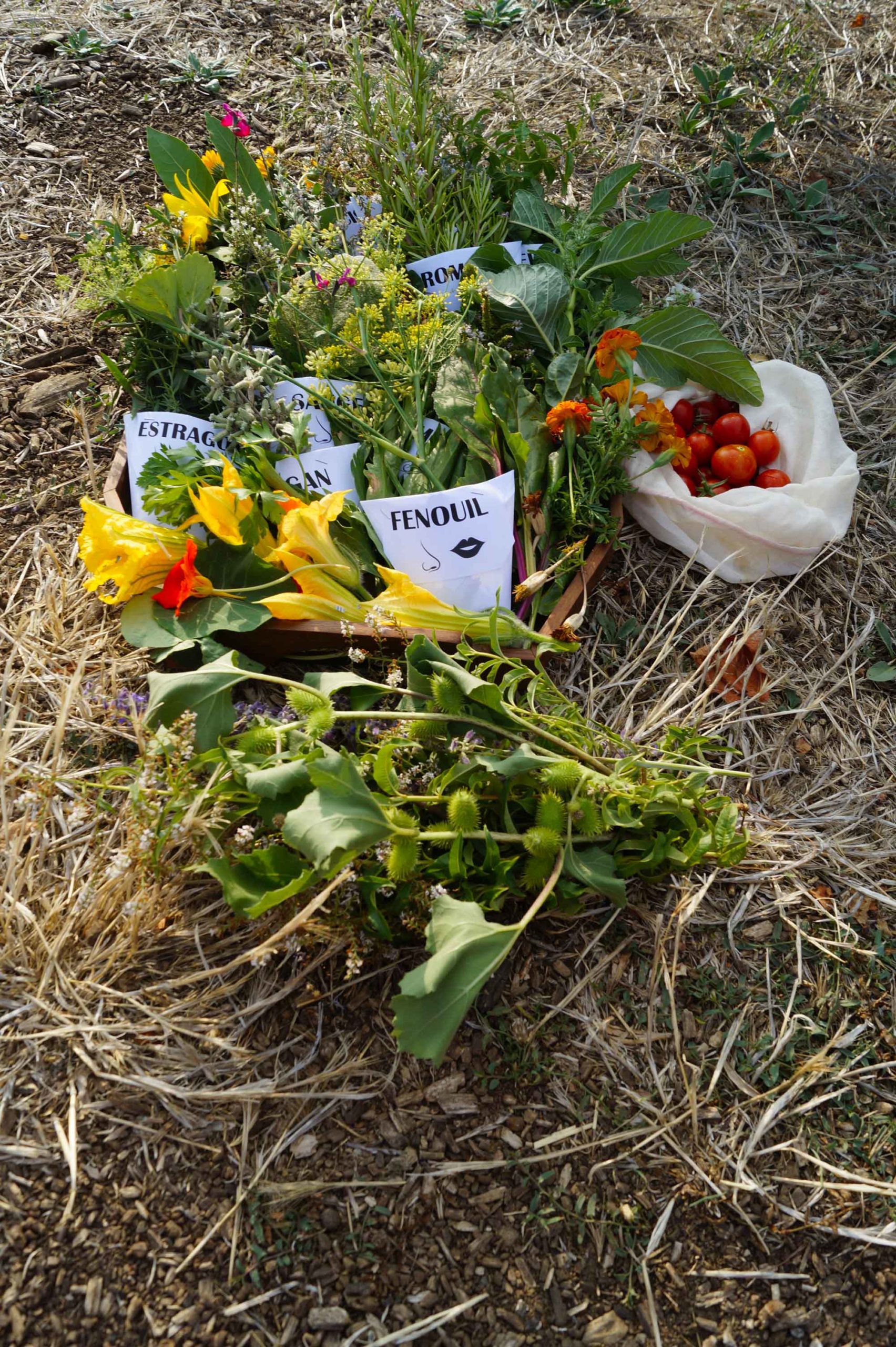 - À goûter : blettes colorées, persil, fleurs de courges, fleurs de soucis, bourrache, livèche, pétales de mauve, roquette sauvage…etc.