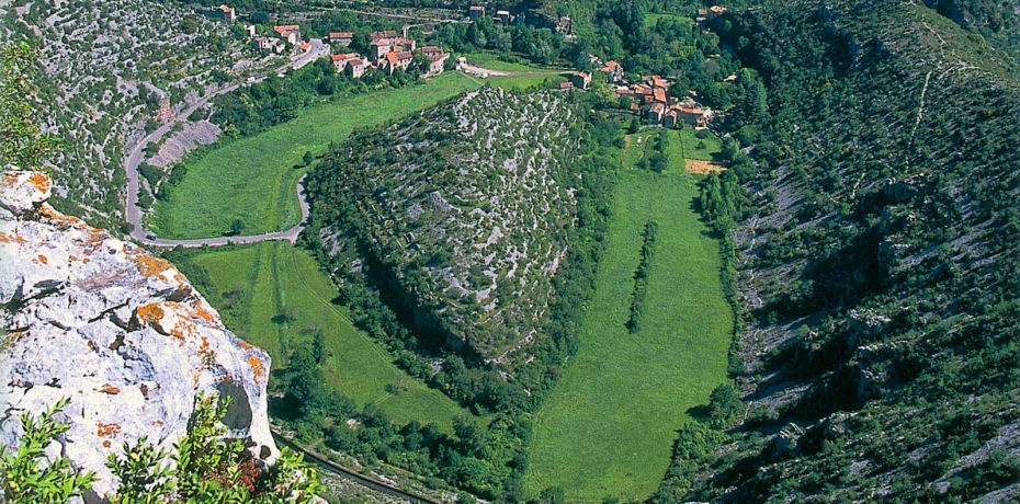 Le Cirque de Navacelles se trouve au cœur des Causses Méridionaux, constituant un ensemble de paysages splendides façonnés par les éléments et l’activité humaine.