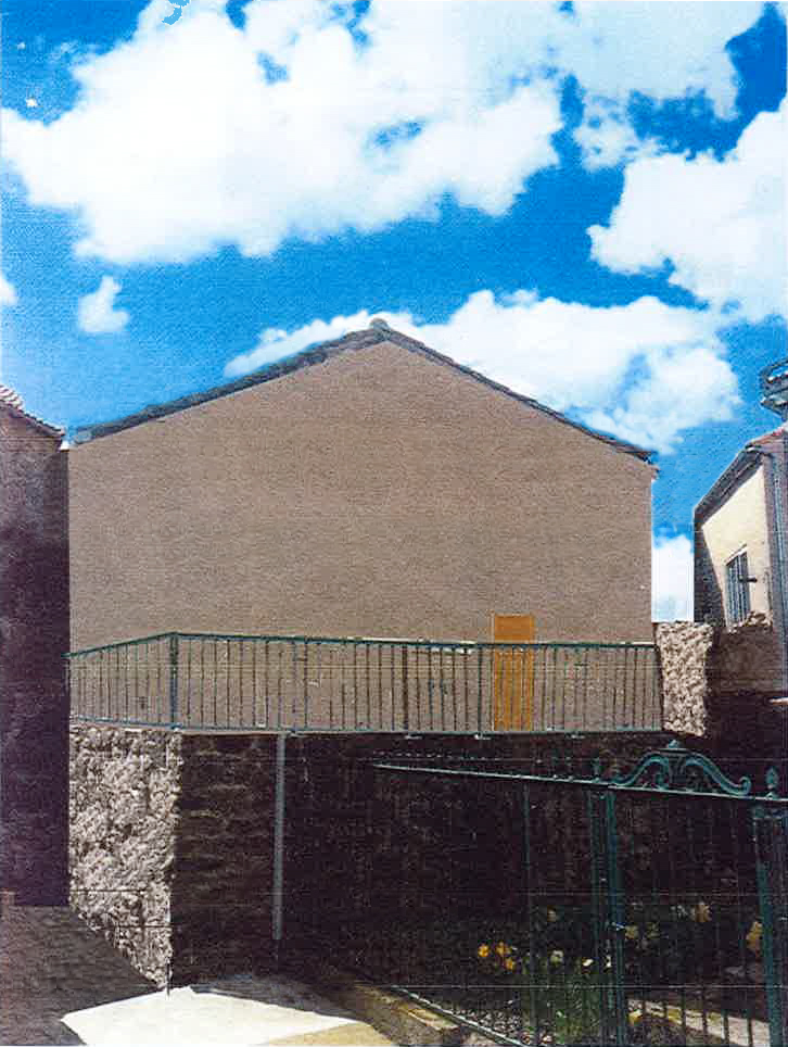 Désireux de créer une terrasse pour pouvoir profiter du soleil, il conçoit la démolition de l’une de ses deux maisons, une maison charmante aux détails architecturaux coquets, située face à l’église et aux côtés du calvaire et de son jardinet.