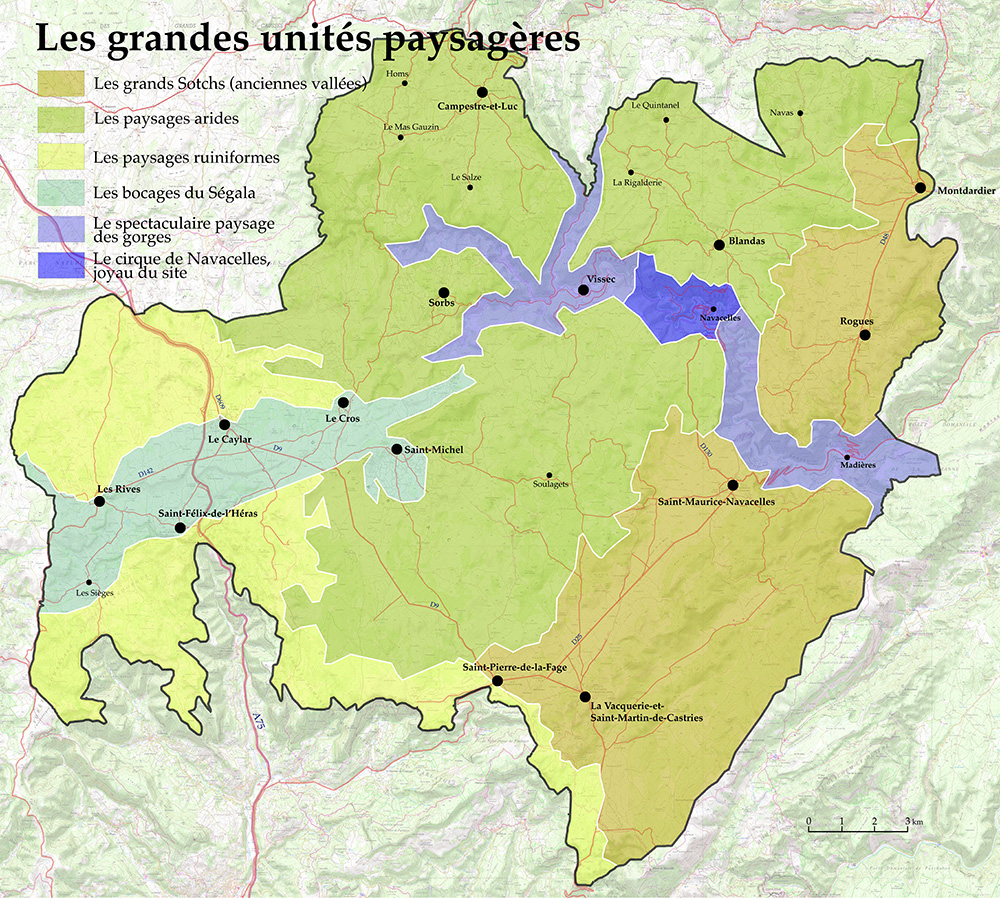 Carte : Délimitation du 15e Grand site de France et définition de ses entités paysagères.
