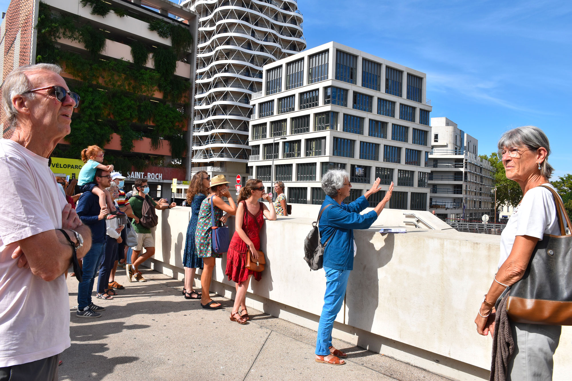En fin de parcours, l’accès à la partie haute du parking Saint-Roch a offert la découverte de vues surplombantes sur le futur quartier “Nouveau Saint-Roch”, parfaite illustration des incessantes mutations de la ville, liées à l’évolution de la société.