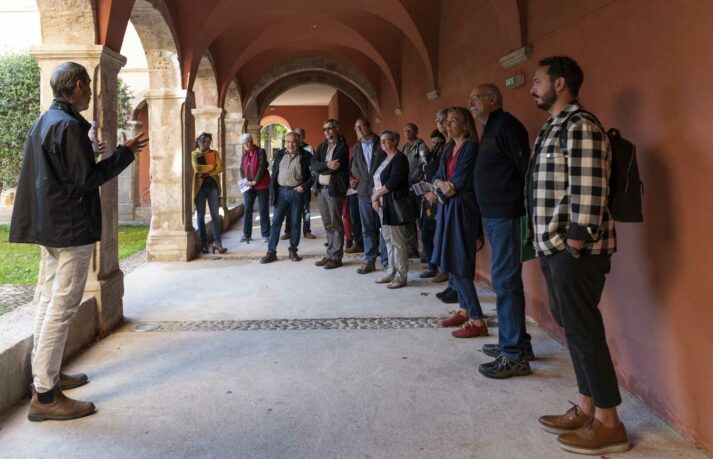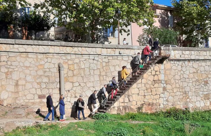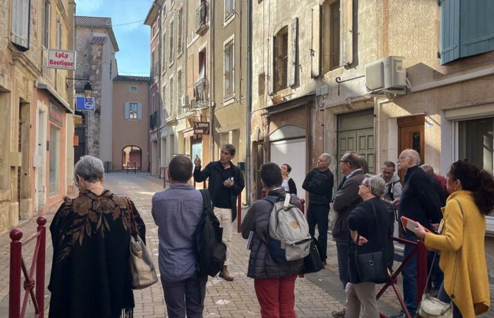 Cette fois-ci, depuis l’esplanade, en passant par le cloître mais aussi au travers de rues du centre ancien, les 16 participants ont pu écouter et questionner ce véritable spécialiste, sur les pathologies courantes rencontrées dans les habitations en centre ancien (humidité…) mais aussi les bonnes et mauvaises façons d’intervenir sur celles-ci. Les questions de couleurs, de techniques traditionnelles locales, de matériaux vertueux mais aussi de composition de façade et d’harmonie globale ont été évoquées pour renseigner au mieux les participants sur la valeur et l’importance du bon traitement de ce “patrimoine ordinaire”.