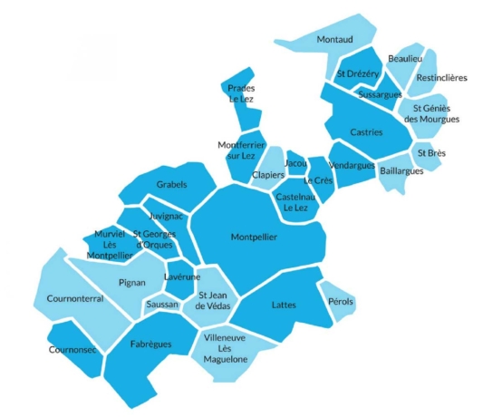 En 2022, 17 communes ont été labellisées “Commune économe en eau”. En 2023, 2 nouvelles communes ont rejoint le palmarès : Saint-Georges-d’Orques et Sussargues au côté de 16 communes lauréates 2022 ayant réussi à obtenir le label 2023. Ci-dessous, la carte des communes labellisées en 2023 (en bleu foncé). Les lauréats ont été nommés par Marjorie SALAÜN ROVIRA, directrice de l’ALEC Montpellier.