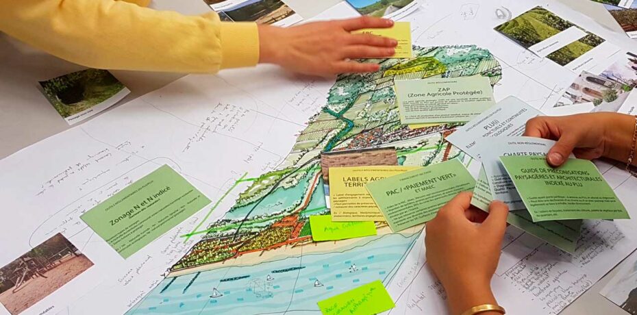 À travers l’élaboration d’une stratégie d’abord et la mise en place d’une ébauche de projet d’aménagement ensuite, les élève ont fait face à une mise en situation pratique par groupes sur un territoire donné.