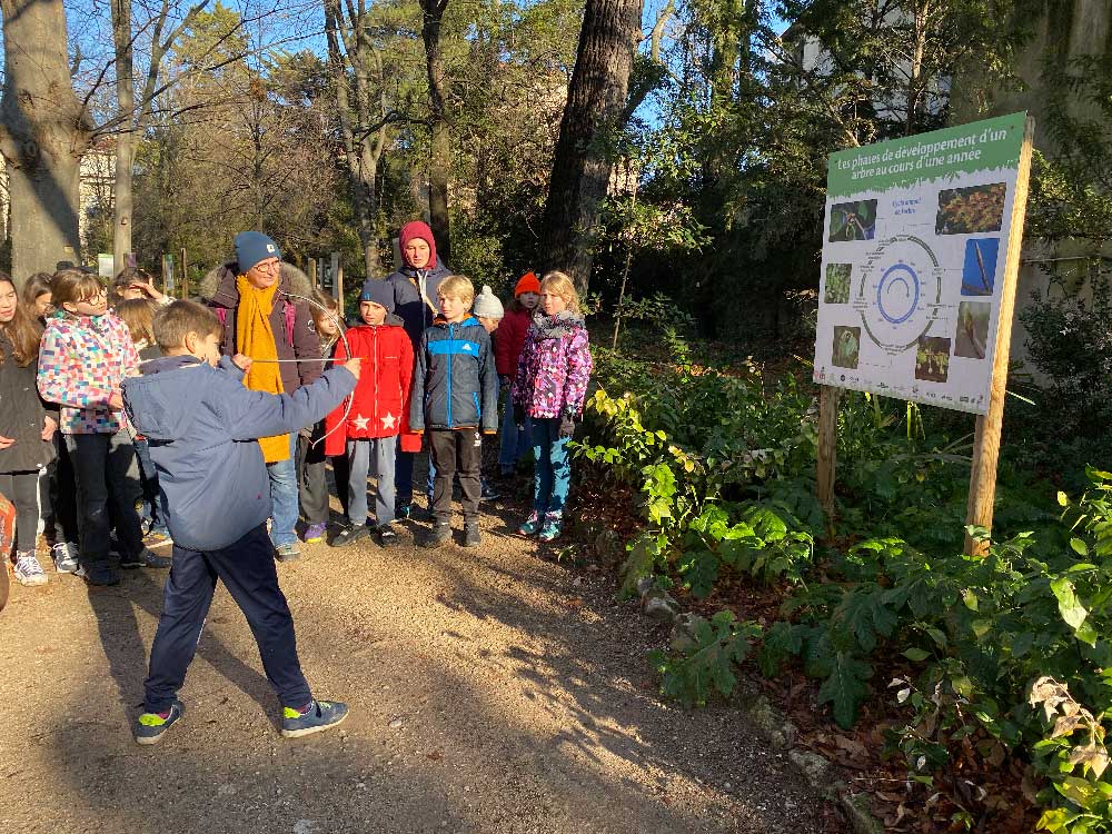 L’école Calandreta dau Chivalet a joué le jeu de cette animation, qui a permis à des enfants de CM et de CE, les 12 et 26 janvier 2024, une découverte insolite du Jardin des Plantes, guidés par le Denis, dit “Captain’Botanic”, Anne Verdier et Anne-Marie Llanta, architectes et Charline Texier, étudiante en architecture.