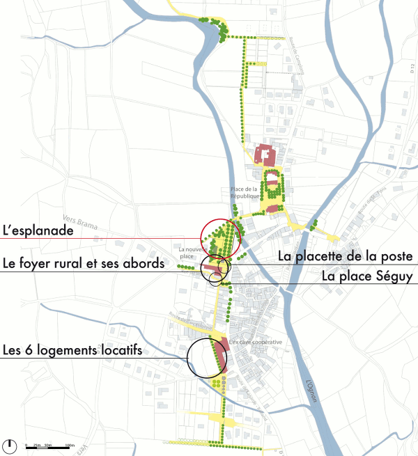 • Etude pour l’aménagement complet de la voie douce, depuis la place de la République jusqu’après la cave coopérative (en cours, Courtiade, architecte – urbaniste / Guégan, architecte – urbaniste / Avril en Mai, paysagiste)