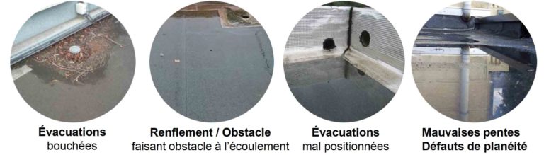En premier lieu, la bonne conception du toit terrasse doit éviter la création de flaques d’eaux résiduelles. Le contrôle des pentes et le bon positionnement des évacuations est un point essentiel ! Tout comme l’entretien par le maître d’ouvrage qui devra régulièrement s’assurer que rien ne fait obstacle au parfait écoulement de l’eau (feuilles, débris).