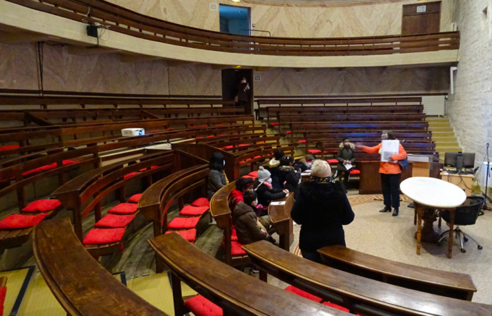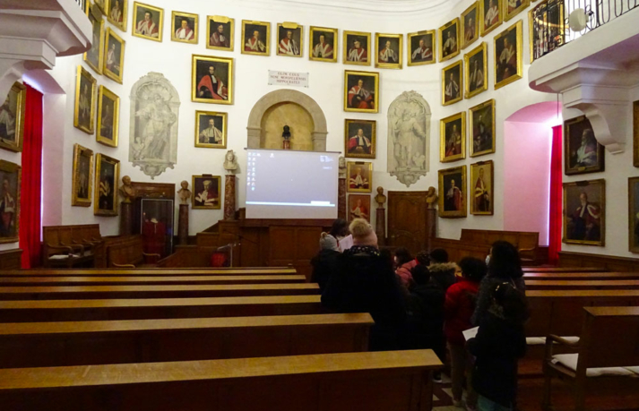L’observation des façades sur cour leur a permis de comprendre l’évolution du bâtiment, depuis le monastère bénédictin initial, jusqu’à sa fonction actuelle. Les enfants ont pu visiter la Salle des Actes, où les jeunes médecins prêtent serment avant de commencer à exercer leur profession, et le théâtre d’anatomie.