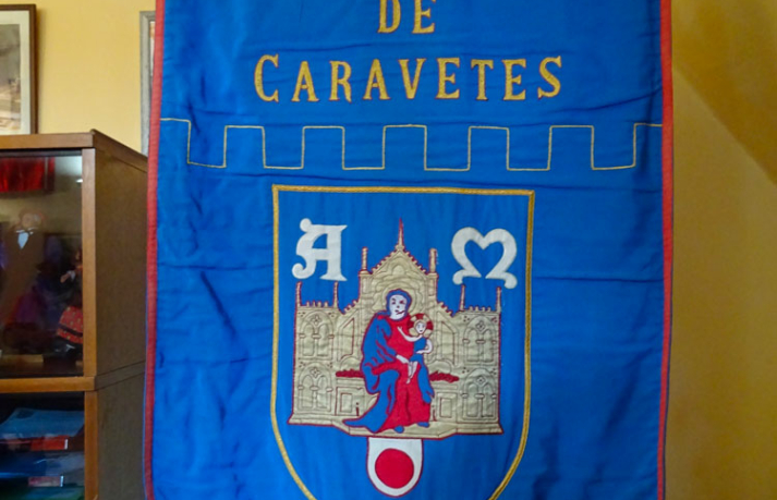 Sur ce blason, le rond rouge représente Saint Guilhem, et juste au-dessus, on y aperçoit la Vierge Marie.