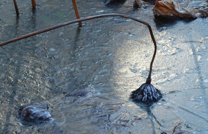 … provenant du bassin aux Nélombos (gelé en surface à cette période hivernale).