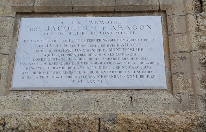 Sur l’une des faces, on y trouve un hommage à Jacques Ier d’Aragon, fils de Marie de Montpellier.