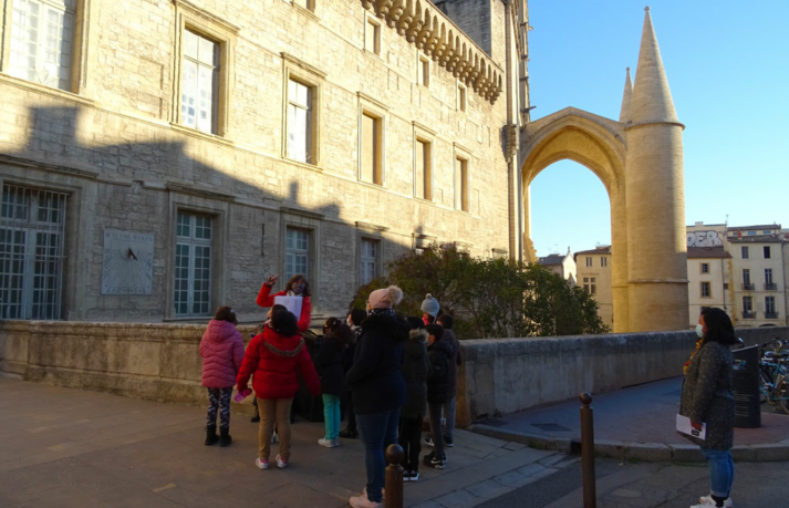 Le 14 janvier 2022, Anne-Marie LLANTA, architecte-urbaniste au CAUE 34, guidait une classe d’élèves de CM1 de l’école Voltaire, accompagnés de leur enseignante, Karine VIGNERON-LAROSA, à travers une balade architecturale en lien avec le célèbre astrologue, apothicaire et médecin.