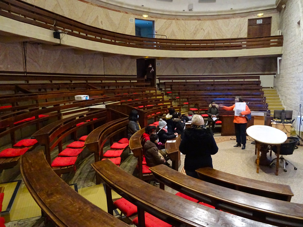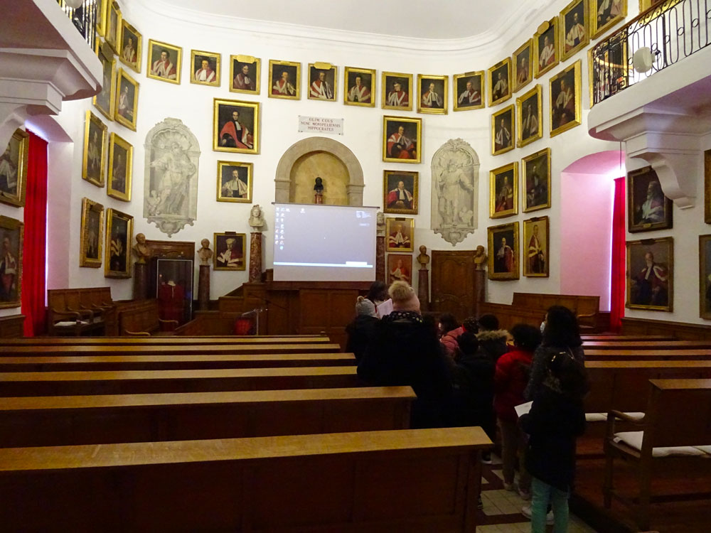 L’observation des façades sur cour leur a permis de comprendre l’évolution du bâtiment, depuis le monastère bénédictin initial, jusqu’à sa fonction actuelle. Les enfants ont pu visiter la Salle des Actes, où les jeunes médecins prêtent serment avant de commencer à exercer leur profession, et le théâtre d’anatomie.