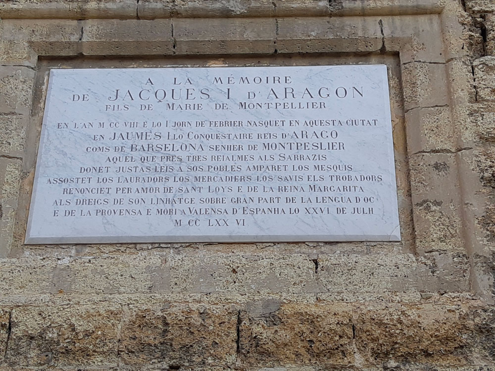 Sur l’une des faces, on y trouve un hommage à Jacques Ier d’Aragon, fils de Marie de Montpellier.
