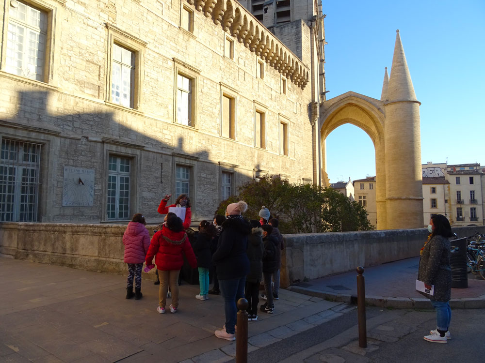 Après avoir écouté l’histoire de la Tour des Pins et de la prophétie de Nostradamus s’y rapportant, les élèves sont partis découvrir la faculté de médecine de Montpellier, à côté de la cathédrale…. Le lien avec Nostradamus ? Notre homme y était étudiant à partir de 1529 pour y obtenir son doctorat en médecine.