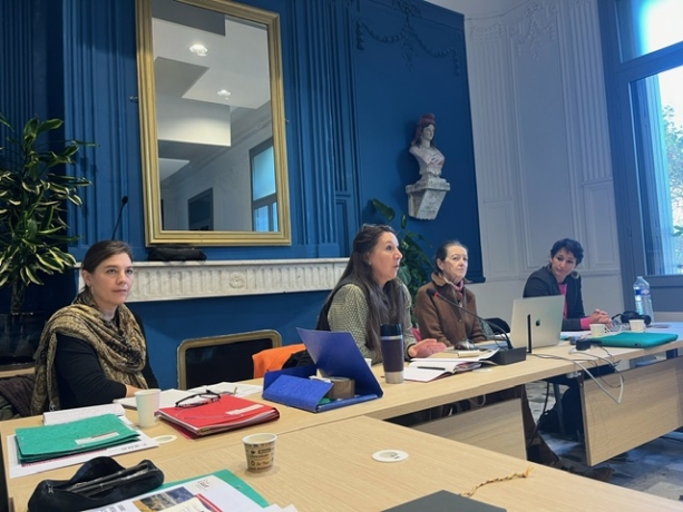 De g. à d., Serena Palazzi, architecte paysagiste CAUE 34, Florence Fombonne-Rouvier, directrice du CAUE 34, Véronique Mure, botaniste et ingénieure en agronomie tropicale et Anaïs Hervouet, paysagiste CAUE 34. Crédits photos : MA, CAUE 34
