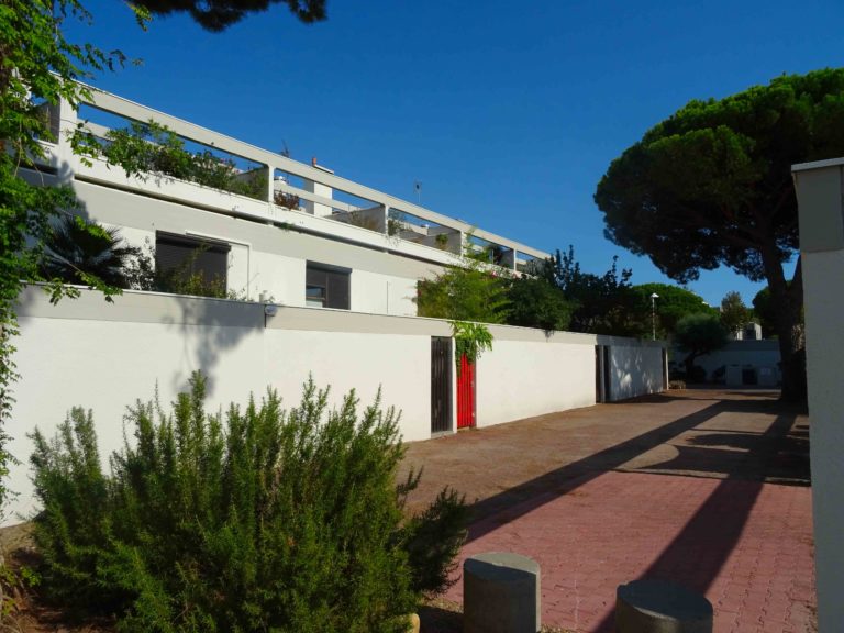 Le chantier a duré 4 ans. Le village comprend 125 logements, répartis sur 3 immeubles et petites maisons, chacun disposant de patios ou terrasses, le tout dans un parc arboré de 1,5 ha proche de la plage et du centre ville.