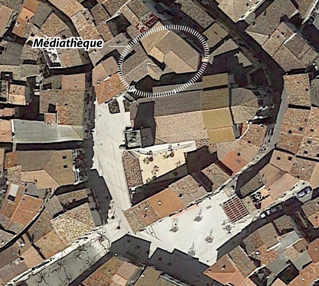 - Présentation du site de la médiathèque et l’évidence de l’enjeu patrimonial qui lui est associé. La requalification des abords de l’église est aussi lisible sur la photographie.