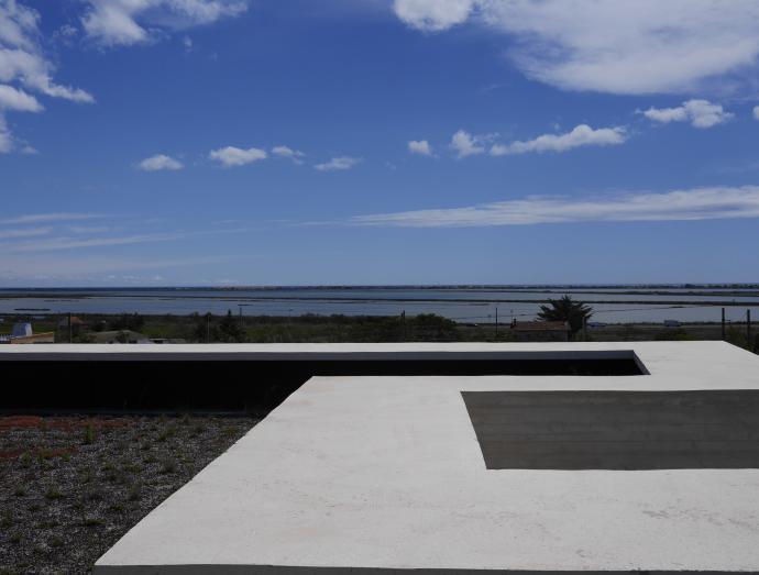 Un travail précis sur l’orientation et le dimensionnement des ouvertures ménageant des vues sur la mer et les étangs permet une entrée de lumière naturelle tout en offrant un confort d’été, renforcée par la présence, au cœur du bâtiment d’une boite à « lumière et à vent » assurant la ventilation naturelle et l’éclairage. Des brasseurs d’air complètent le dispositif. Un système de géothermie profonde : 9 pieux jusqu’à 100 m de profondeur permet de chercher une température constante de 15°.