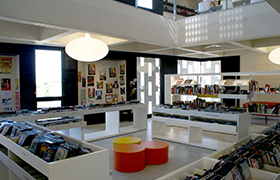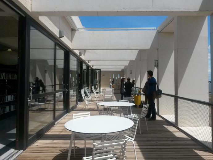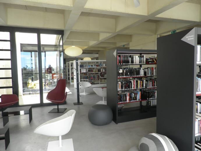 L’ambiance intérieure lumineuse et transparente, la fluidité et la liberté des espaces se prolongeant au 2e étage par une terrasse avec vues sur les étangs invitent les utilisateurs à profiter librement d’un fonds ludique et documentaire particulièrement riche et diversifié.