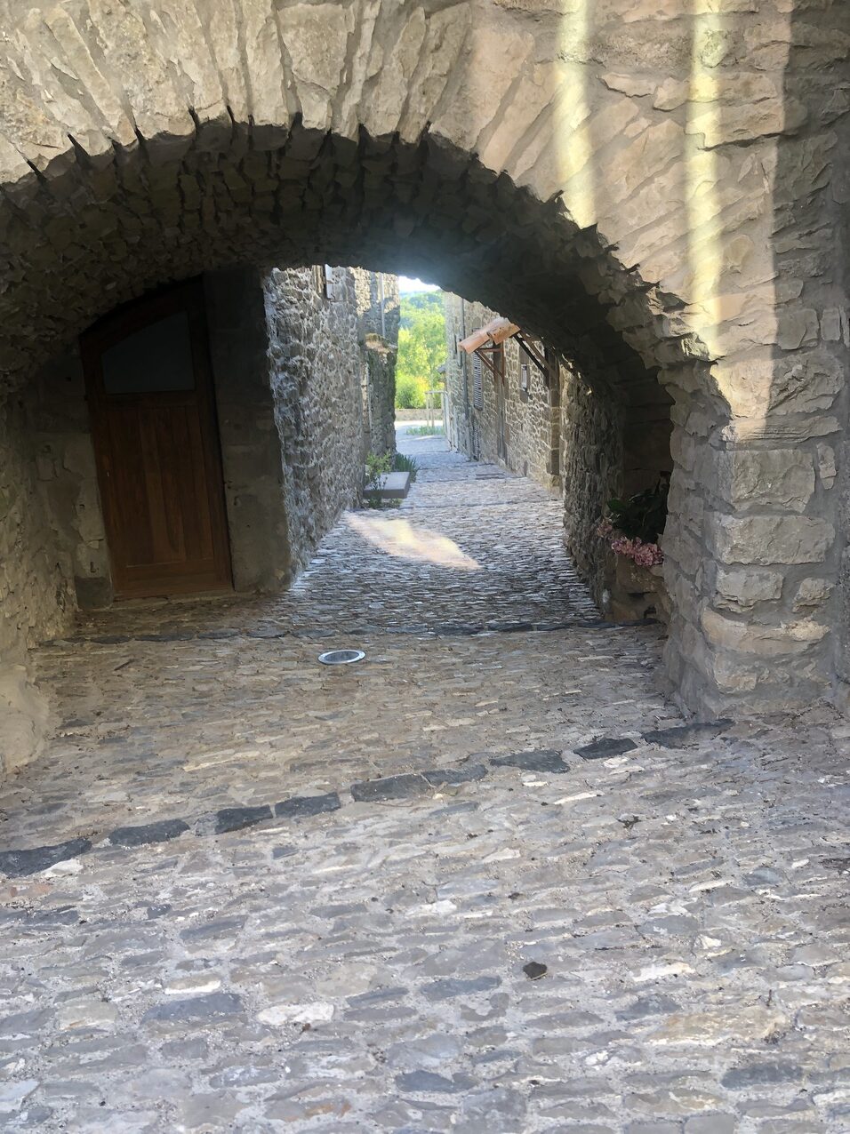 Au-delà du résultat très qualitatif et fidèle à l’esprit des lieux, la démarche est exemplaire puisque les sols en pierre ont été réalisés avec les rebuts d’une carrière proche. Cela a permis, non seulement des économies sur la fourniture, mais aussi de travailler avec des pierres locales et de valoriser un déchet. La pose sur champs de cette pierre, à l’image d’une calade, retarde le ruissellement des eaux de pluie du village en pente. Elle est aussi robuste (8 à 10 cm de pierres en profondeur minimum) et autorise le passage des voitures et des engins agricoles.