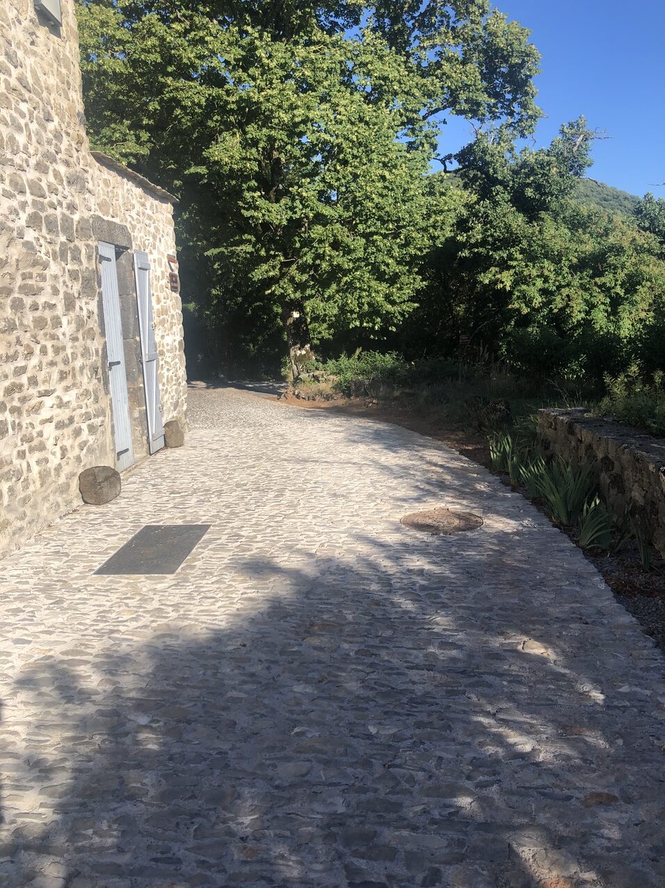 Au-delà du résultat très qualitatif et fidèle à l’esprit des lieux, la démarche est exemplaire puisque les sols en pierre ont été réalisés avec les rebuts d’une carrière proche. Cela a permis, non seulement des économies sur la fourniture, mais aussi de travailler avec des pierres locales et de valoriser un déchet. La pose sur champs de cette pierre, à l’image d’une calade, retarde le ruissellement des eaux de pluie du village en pente. Elle est aussi robuste (8 à 10 cm de pierres en profondeur minimum) et autorise le passage des voitures et des engins agricoles.
