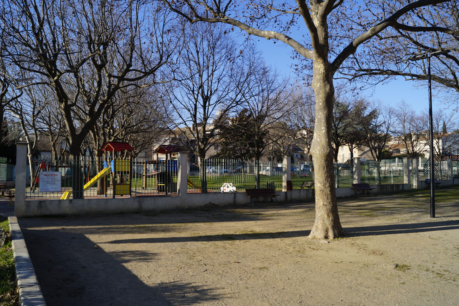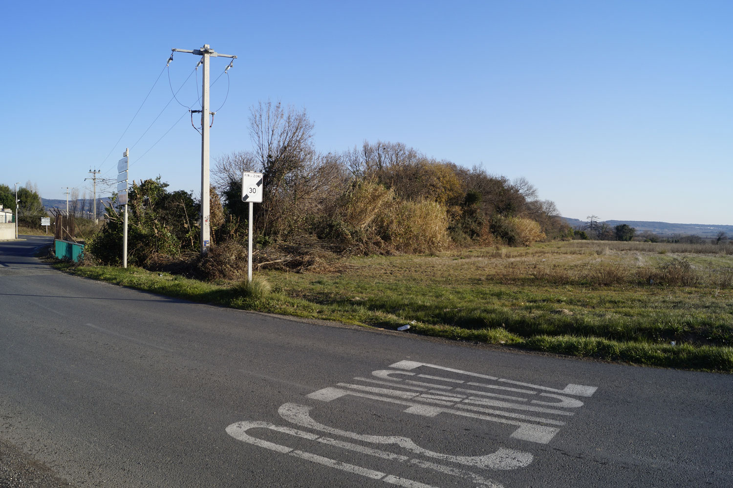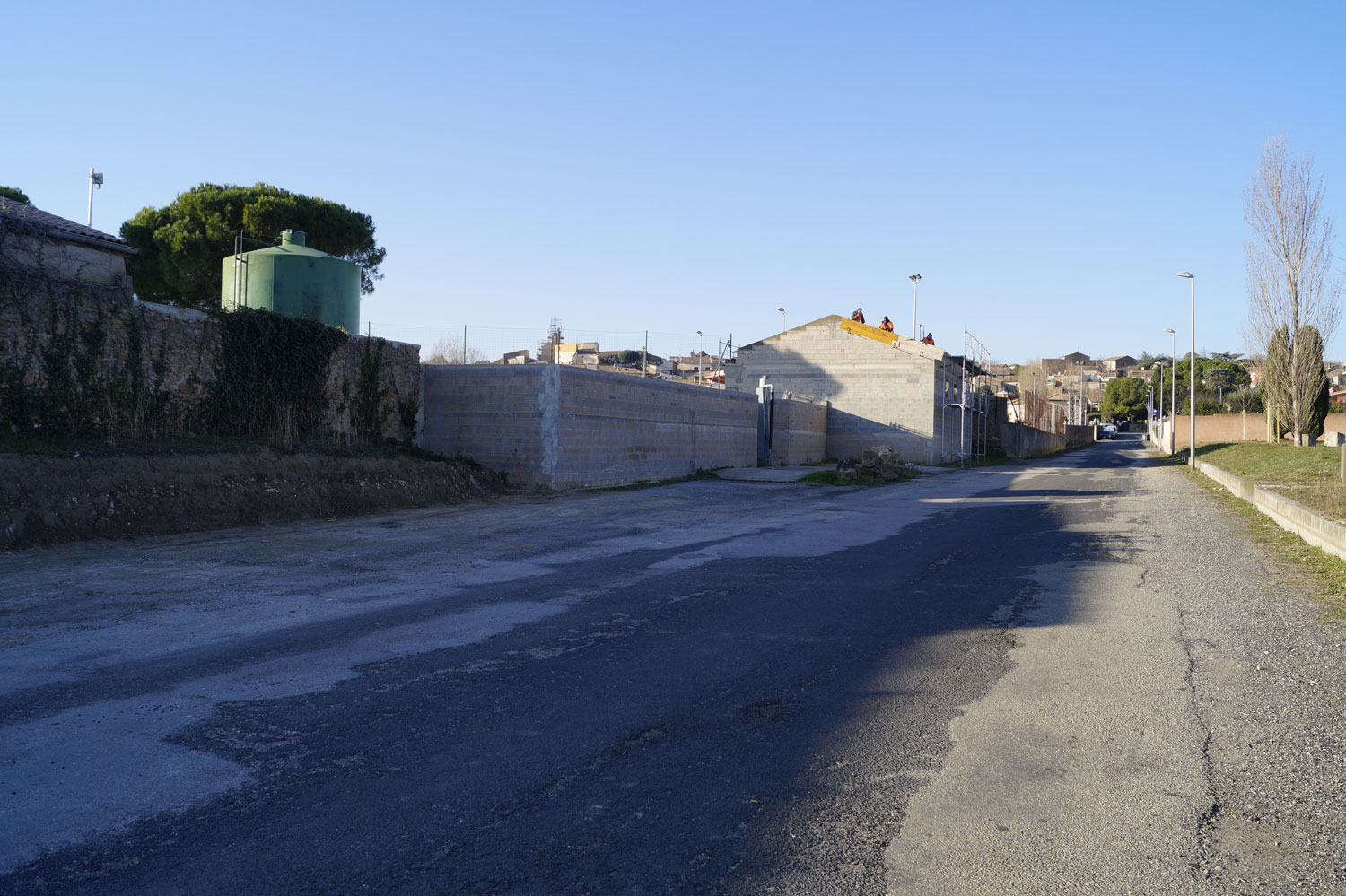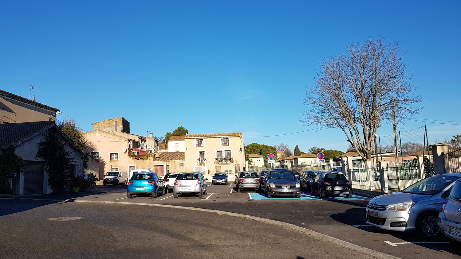 Le souhait de la municipalité est d’aménager un îlot, à proximité du stade, accolé au centre ancien sur sa frange Est, ouvert sur les coteaux de la Peyne et le ruisseau du Ligno coté Ouest. La maîtrise foncière, communale, comprend une grande parcelle qui accueille divers usages au gré des besoins – parking, installation de manèges lors des fêtes de village ou d’école, concours annuel de pétanque, etc – ainsi que les espaces publics attenants. L’ensemble, complexe, est composé de nombreux équipements implantés au coup par coup.