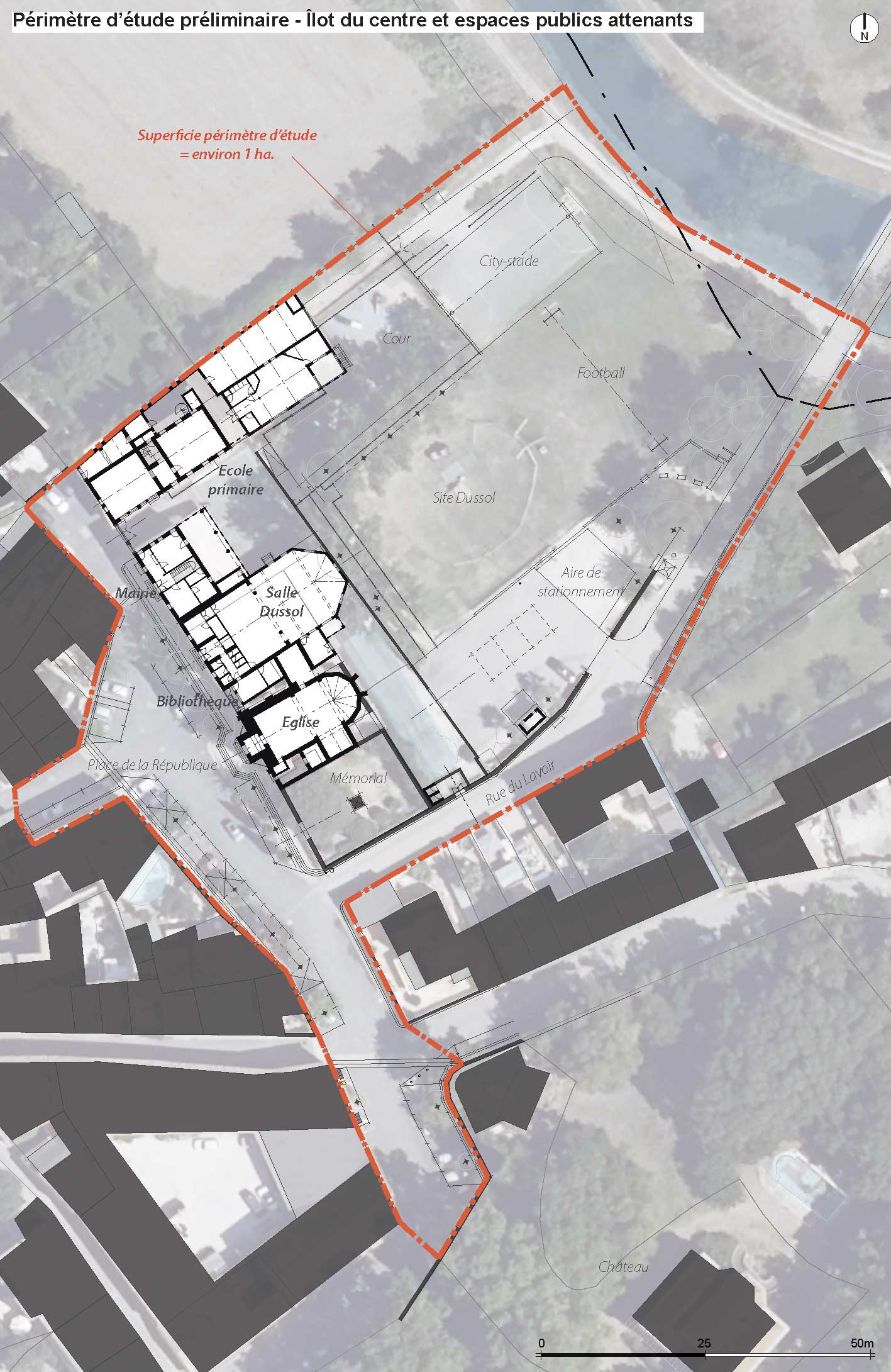 La réflexion doit également prendre en compte la qualité des espaces publics adjacents à l’îlot du centre :