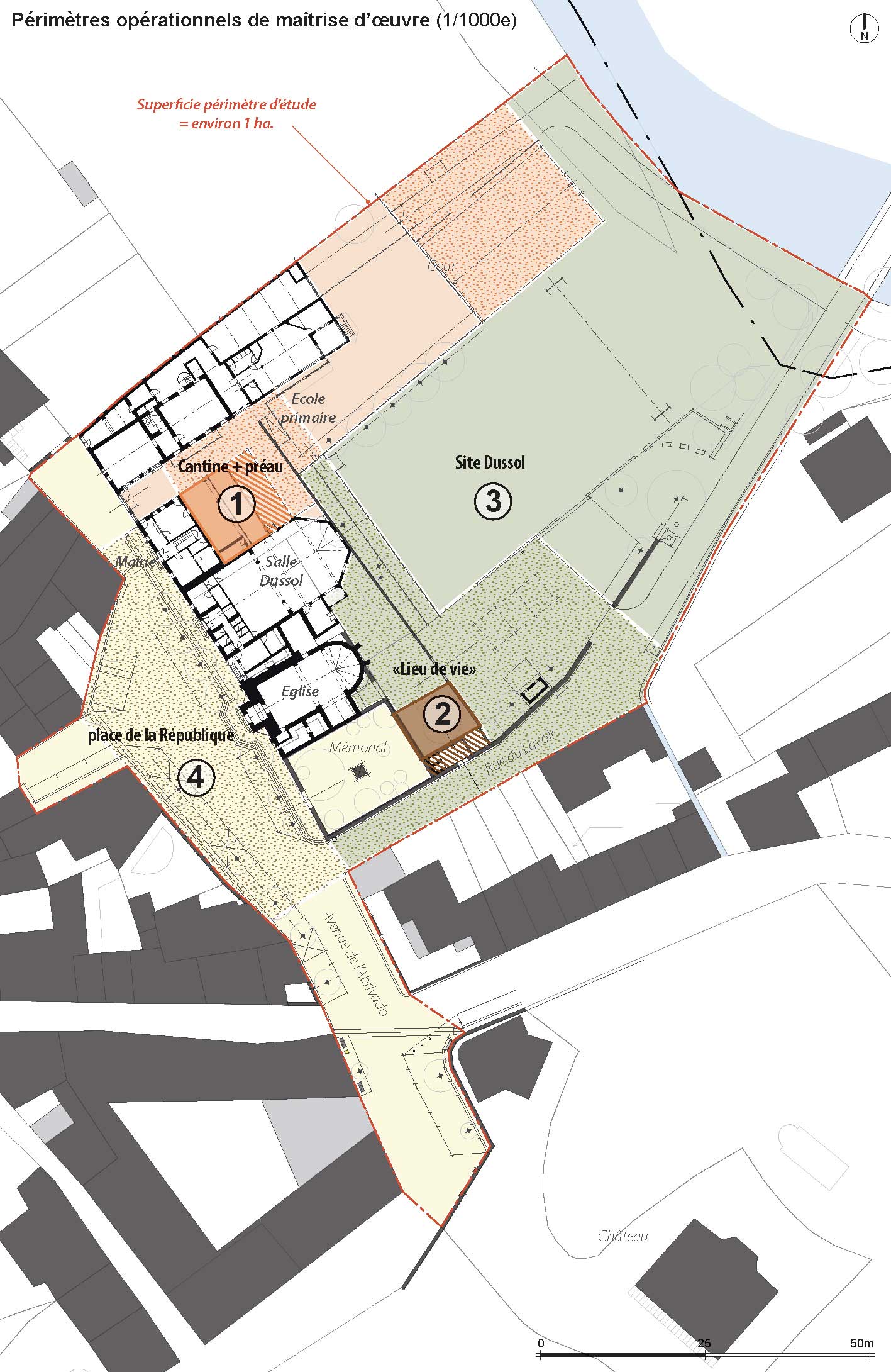 Parallèlement, l’implantation sur l’espace Dussol d’un “lieu de vie” avec un commerce de proximité pourrait renforcer la centralité, étant relié à la place centrale par le square du Mémorial, actuellement fermé.