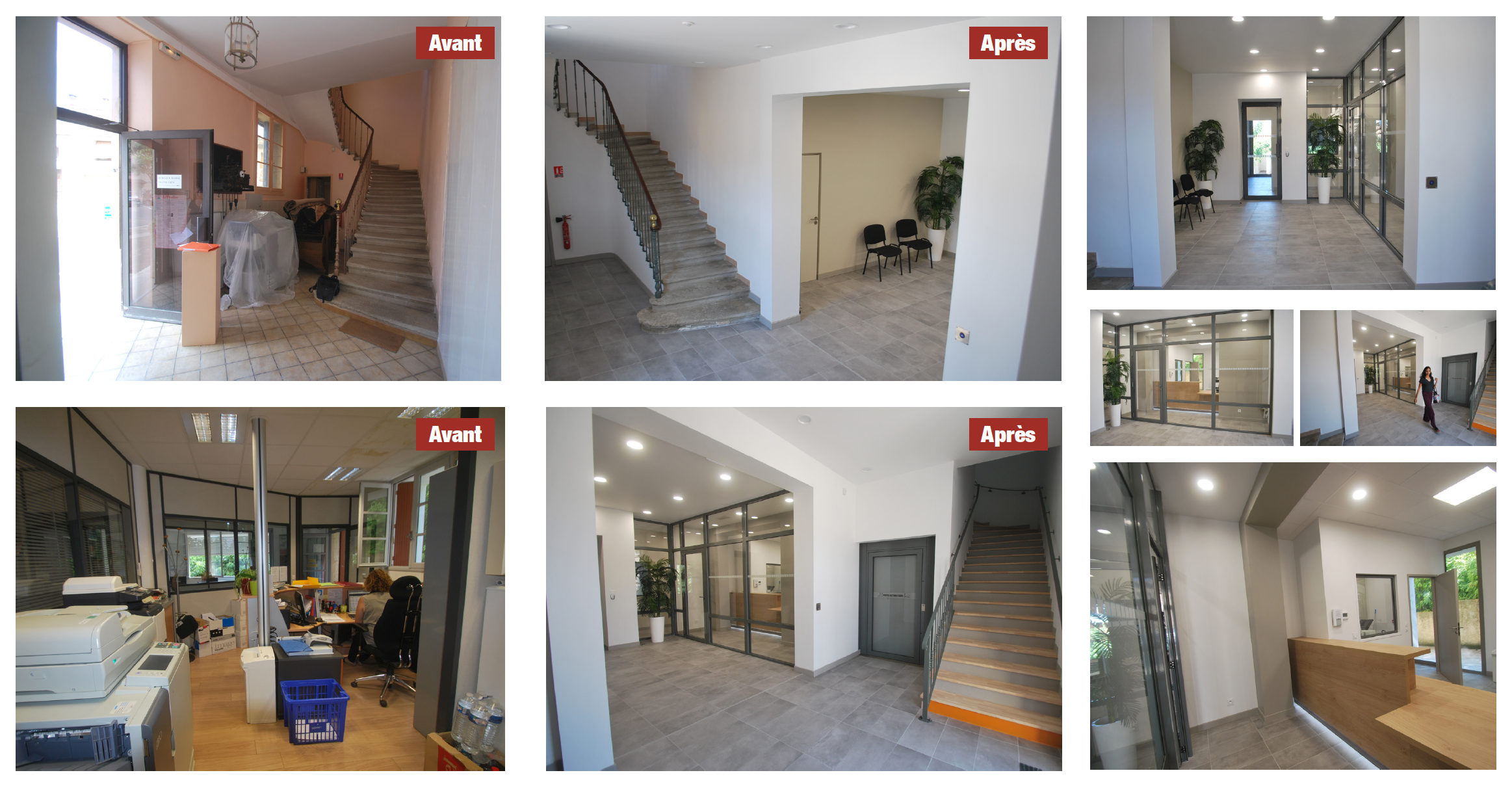 En septembre 2017, les travaux commencent. “Nous avons vidé entièrement le bâtiment !” se souviennent Béatrice DESPIOCH et Christel EYMARD. Plusieurs points ont guidé leur conception : l’accueil du public, la confidentialité des élus vis-à-vis du public et le traitement des circulations, lieux de rencontre et d’échanges.