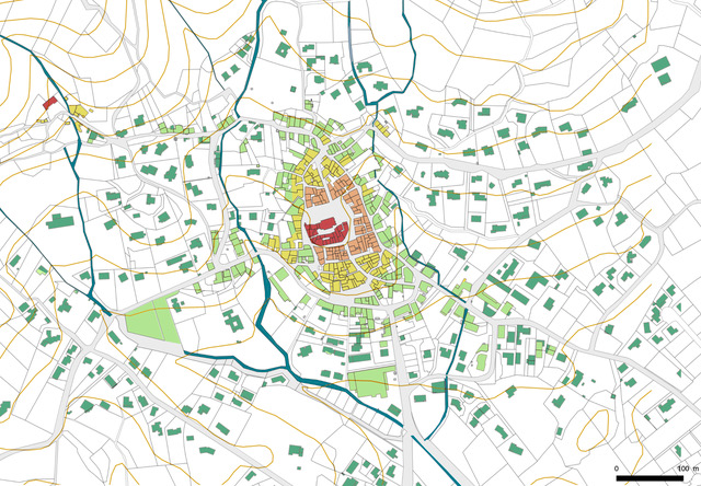 - La ville médiévale, un modèle de compacité. 1200 habitants actuellement, l’étalement urbain…