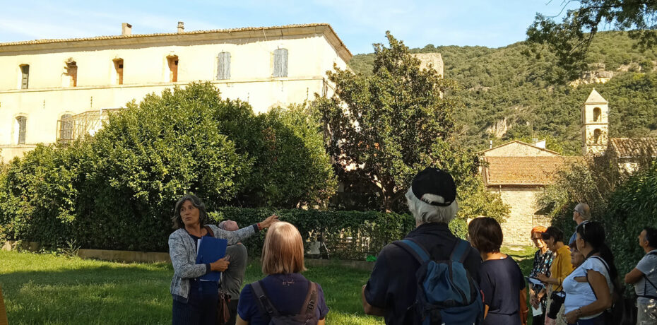 Une fois contournée l’actuelle église paroissiale, les participants ont été invités à rejoindre l’église Saint-Grégoire, devenue musée archéologique, où ils ont pu découvrir des vestiges archéologiques et médiévaux, une passionnante exposition sur l’histoire du village et de ses monuments, ainsi qu’une maquette de l’abbaye.
