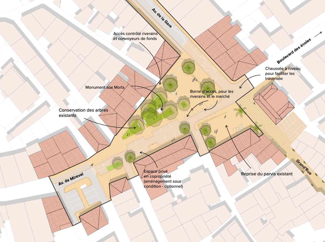 • Avenue de la gare et accroche vers la gare ;