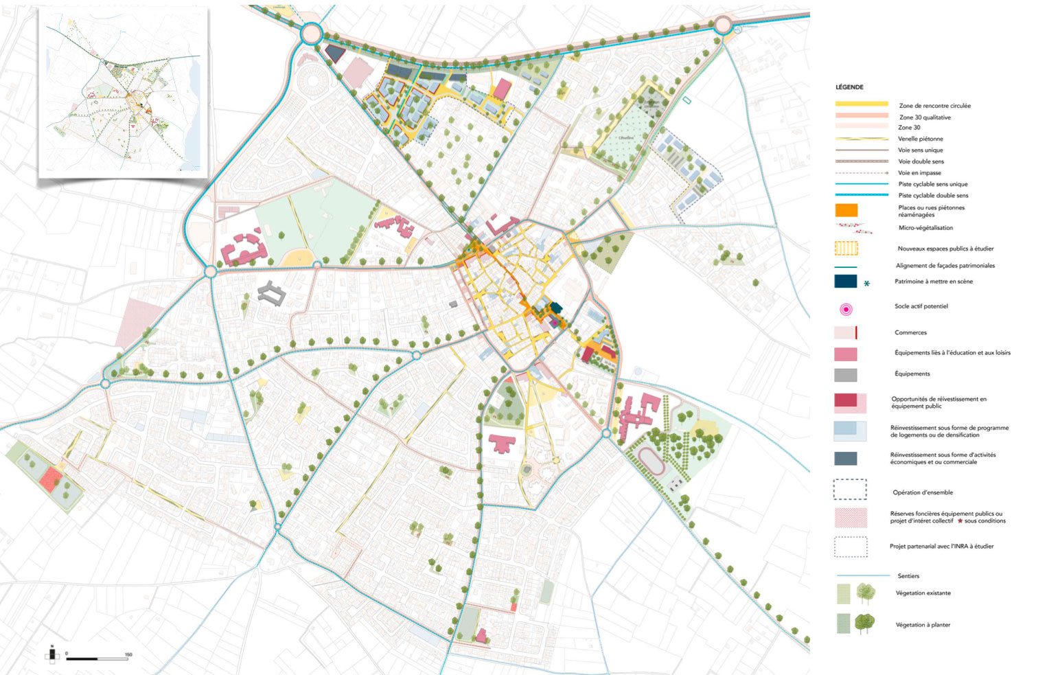 Dans ce contexte de planification intercommunale, la nouvelle équipe municipale a souhaité se doter d’un projet urbain afin d’élaborer une stratégie de développement en termes de mobilité, d’extension, de réinvestissement et de renouvellement urbains, de création ou valorisation d’équipements et d’espaces publics, de gestion du stationnement… À ces thématiques s’ajoutent des questions relatives au renforcement des polarités, à la redynamisation du centre-ville et à la mise en valeur du patrimoine et du paysage urbain
