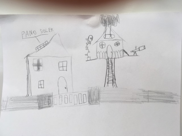 Maison idéale avec cabane dans les arbres, panneaux solaires et observatoire. Crédit : LC, CAUE 34