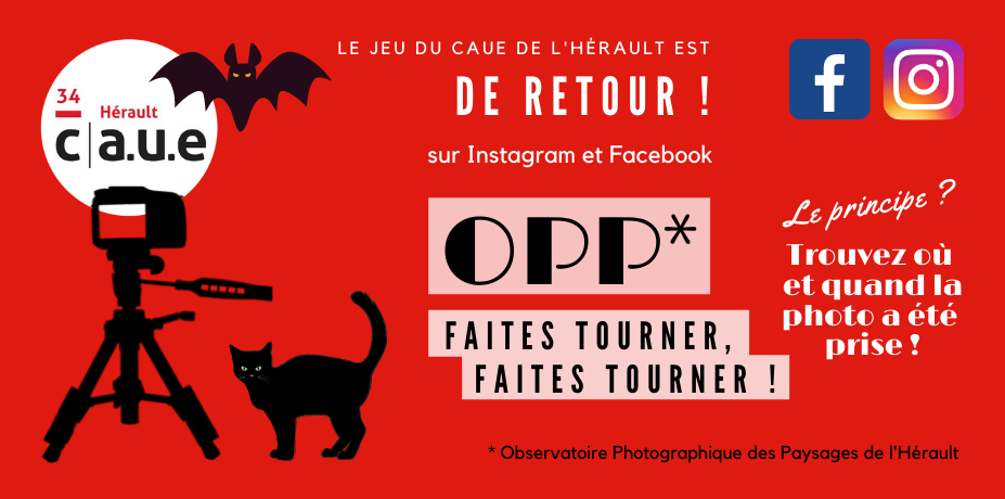 Du lundi 25 octobre au dimanche 7 novembre 2021, le CAUE 34 renouvelle son jeu OPP, faites tourner, faites tourner ! sur Instagram et Facebook, mettant à l’honneur le fonds photographique de l’OPP 34 : l’Observatoire photographique des paysages de l’Hérault. À gagner : un livre & un jeu de société du blog Famille Zéro Déchet.