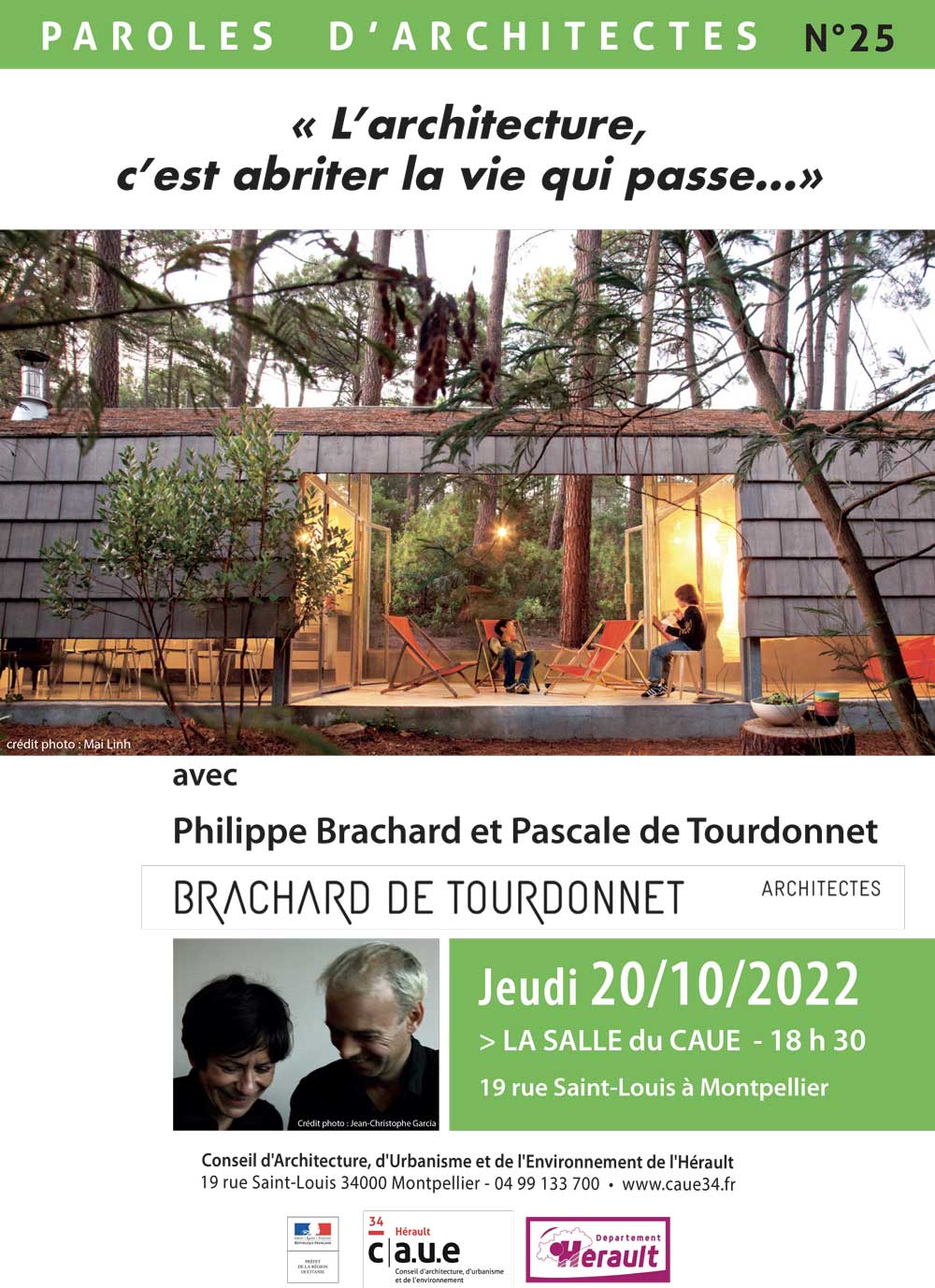 Une conférence avec Pascale DE TOURDONNET et Philippe BRACHARD, architectes et auteurs du livre “Maisons”, illustrant 10 maisons imaginées et construites par leur atelier d’architecture.
