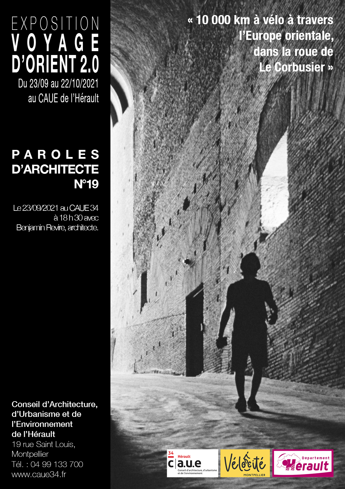 - REPLAY du jeudi 23 septembre 2021, à 18 h 30 à La Salle du CAUE 34, Montpellier – à la veille du lancement du Mois de l’architecture Occitanie – inauguration de l’exposition et conférence “Paroles d’architecte : Voyage d’Orient 2.0” avec Benjamin REVIRE.